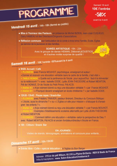 Évènement inter-dénominationnel, destiné à tous ceux et celles qui ont, ou auront, une responsabilité éducative et instructive au sein de la famille, l’école ou l’église.